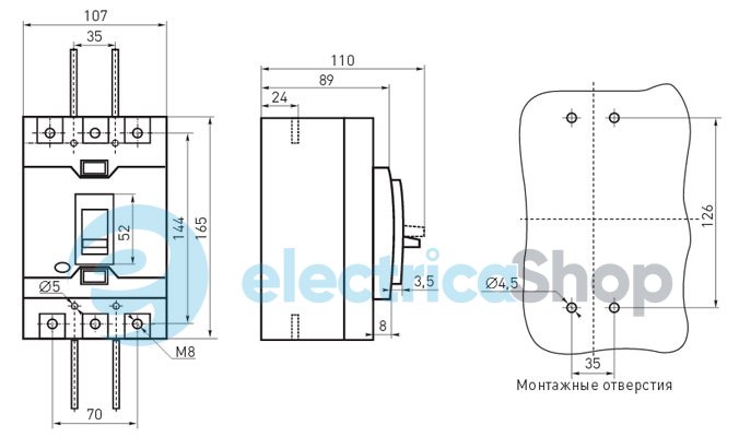 - Монтаж: на монтажную панель