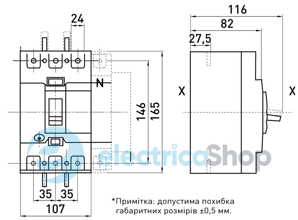 - Степень защиты, IP: Корпус выключателя - IP30, со стороны контактных зажимов - IP00