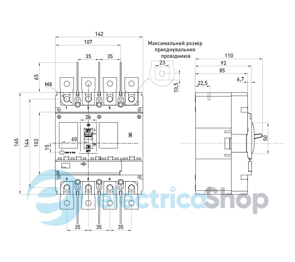 - Макс. сечение присоединяемых проводников мм?: 120
