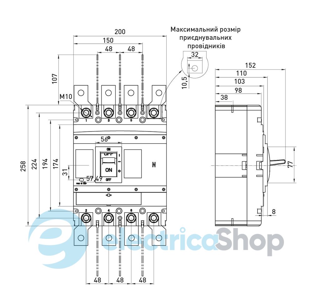 - Степень защиты, IP: Корпус выключателя - IP30, со стороны контактных зажимов - IP00