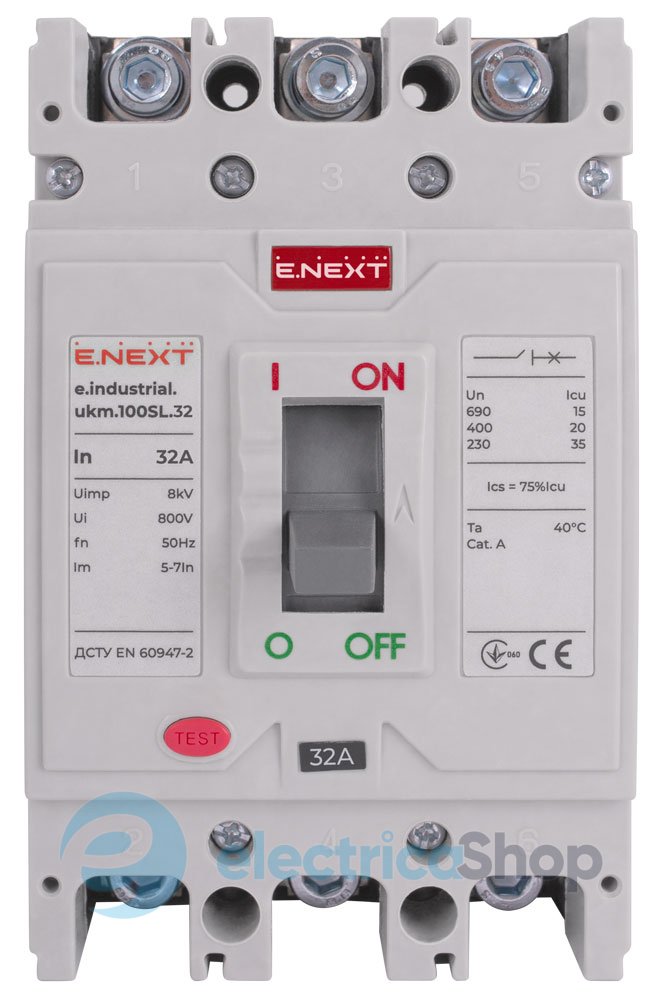 Силовой автоматический выключатель e.industrial.ukm.100SL.32, 3р, 32А предназначен для защиты электрических цепей от долгосрочных перегрузок и токов коротких замыканий, а также для оперативного включения и отключения участков электрических сетей с частотой 50 Гц и напряжением до 660 В.