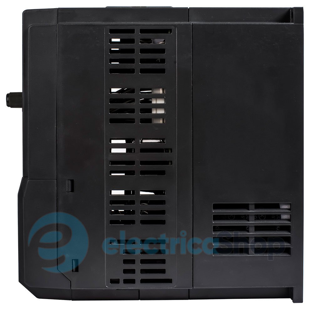- Входы / выходы сигналов управления: 7 программируемых цифровых клемм среди которых 1 высокоскоростная импульсная клемма (до 100кГц), 3 программируемых аналоговых входа 0…+10В или 0…20мА, 2 цифровых программируемых выхода с открытым коллектором среди которых 1 высокочастотный импульсный выход (20 программируемых аналоговых выходы 0…+10В или 0…20мА, RS485 (Modbus RTU)