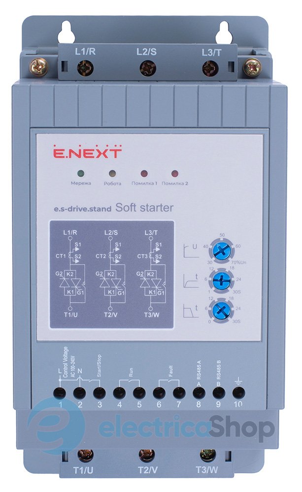 Устройство плавного пуска серии e.s-drive.stand ТМ ENEXT предназначено для плавного запуска асинхронных электродвигателей с целью снижения пиковых нагрузок как на двигатель, так и питающую сеть. Применяется в электрических сетях переменного тока, напряжением 220/380 В и частотой 50/60 Гц. Устройство оснащено встроенной функцией байпас.¶