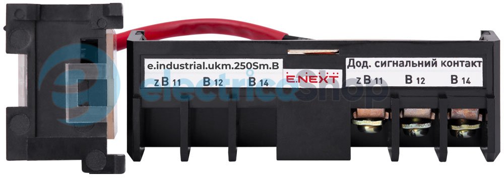 Дополнительный сигнальный контакт e.industrial.ukm.Sm.B. Предназначен для индикации отключения силового выключателя e.industrial.ukm.Sm/SL от перегрузки, короткого замыкания, из-за срабатывания от расцепителя минимального напряжения, независимого расцепителя, или нажатия «ТЕСТ». Дополнительно для подключения сигнального кабеля применяется контактная планка JX.