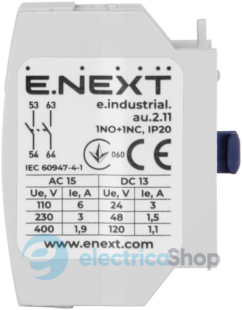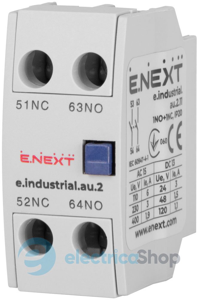 Дополнительный контакт e.industrial.au.2.11, 1no+1nc предназначен для обеспечения сигналов в цепях контроля, индикации и управления (элементы автоматизации процессов).