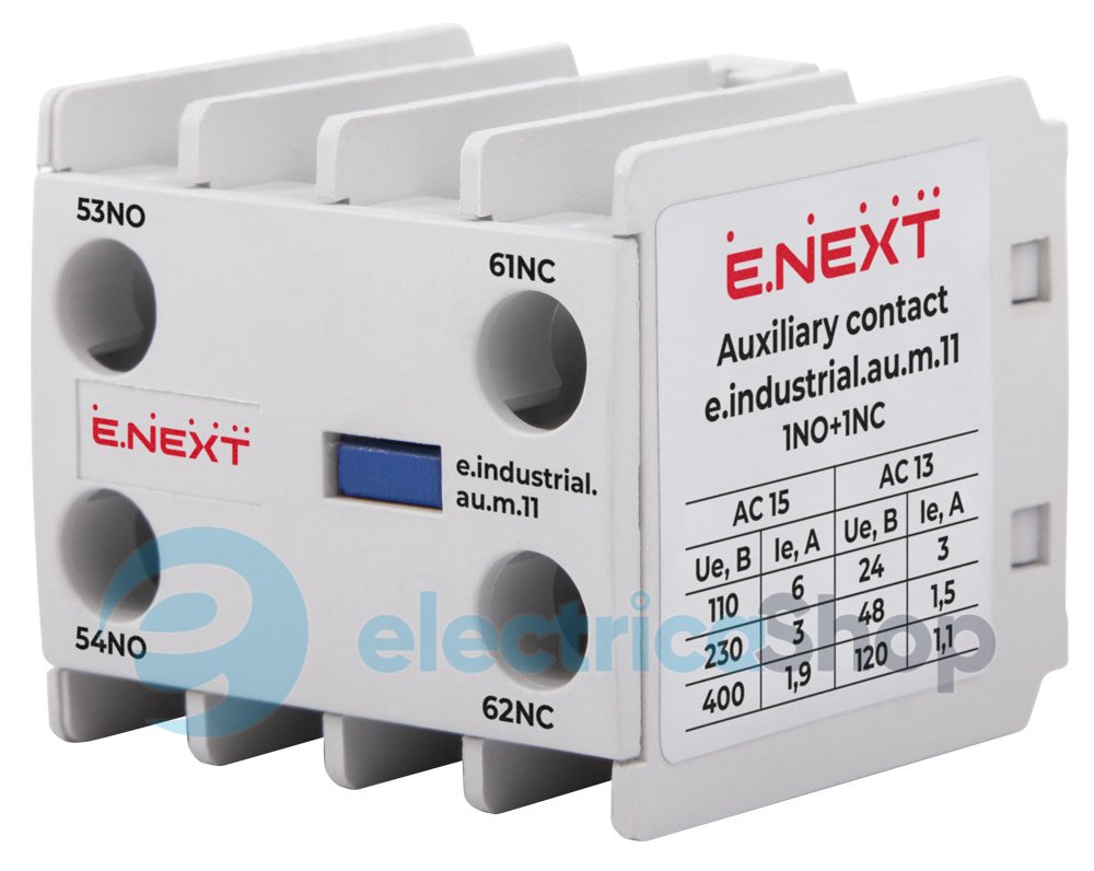 Дополнительный контакт e.industrial.au.m.11, 1nc+1no предназначен для обеспечения сигналов в цепях контроля, индикации и управления (элементы автоматизации процессов).