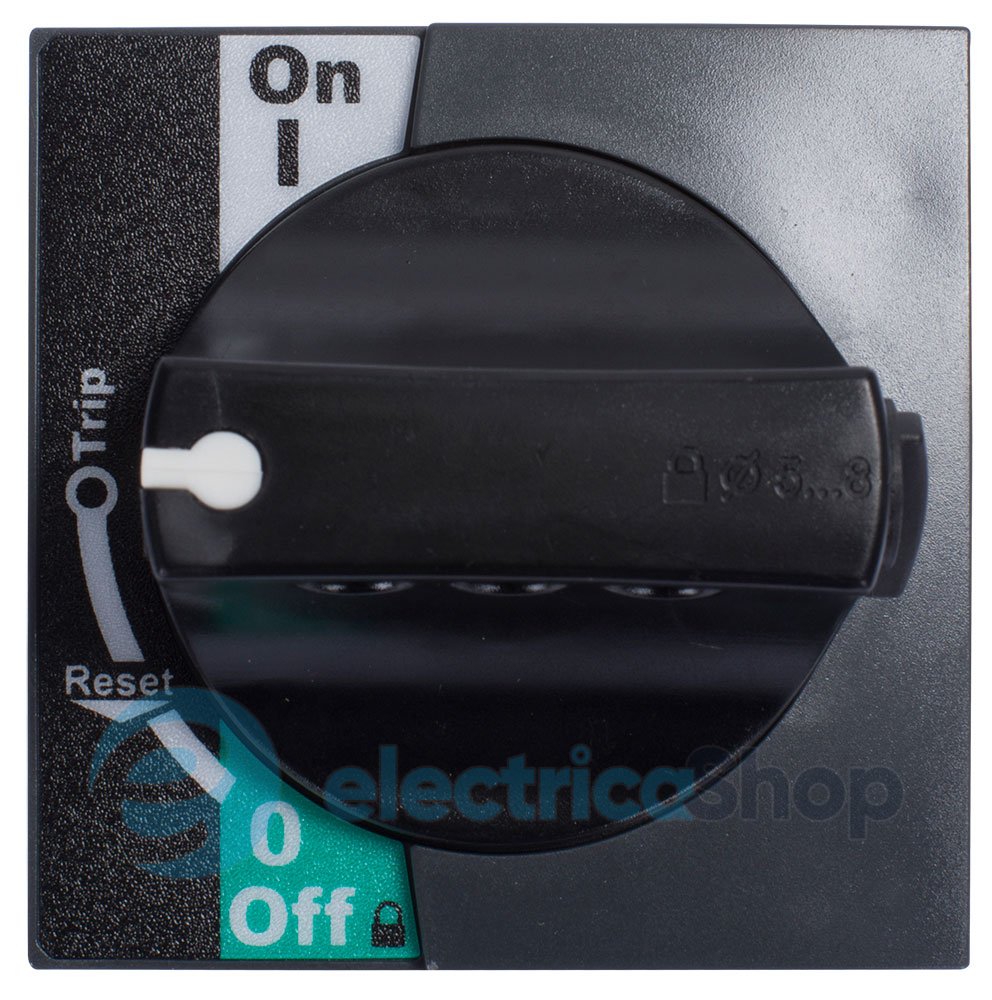 Выносная поворотная рукоятка предназначена для оперативного управления автоматическим выключателем через дверь. Поворотная рукоятка прикрепляется винтами к дверце шкафа, в который установлен выключатель и механически соединяется с аппаратом с помощью штока удлинения.