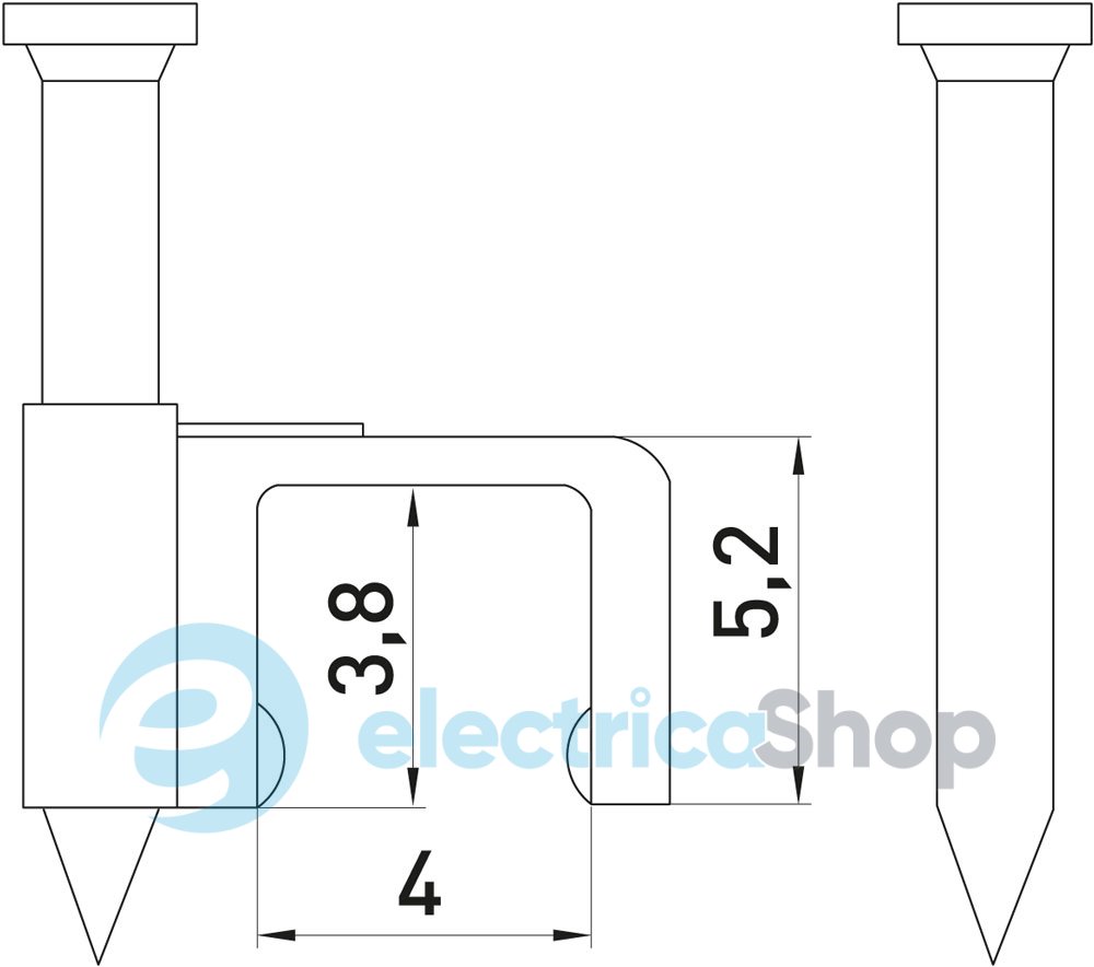 Скоба плоская e.fcc.stand.4 (100шт) предназначена для прикрепления плоских проводов и кабелей к поверхностям стен и потолка.