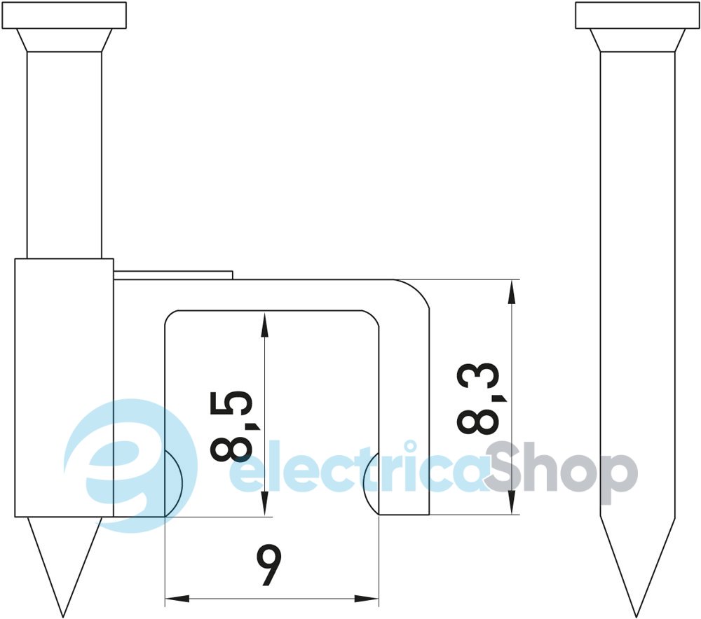Скоба плоская e.fcc.stand.9 (100шт) предназначена для прикрепления плоских проводов и кабелей к поверхностям стен и потолка.