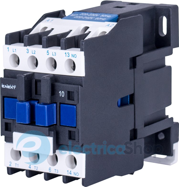 Контактор e.pro.ukc.1.09.400.1NO 9А, 400В, 1NO предназначены для использования в стационарных установках дистанционного пуска, остановки и реверсирования непосредственным подключением к сети 3-фазных асинхронных электродвигателей с слабозамкнутым ротором, а также нагрузок.