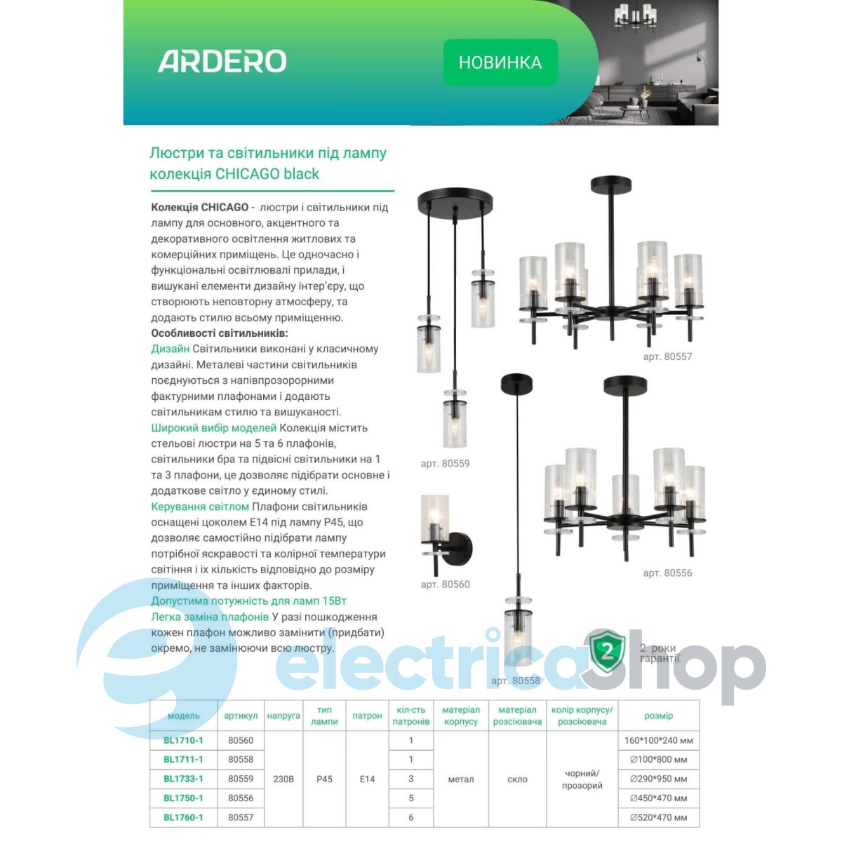 - Цвет плафонов: Прозрачный