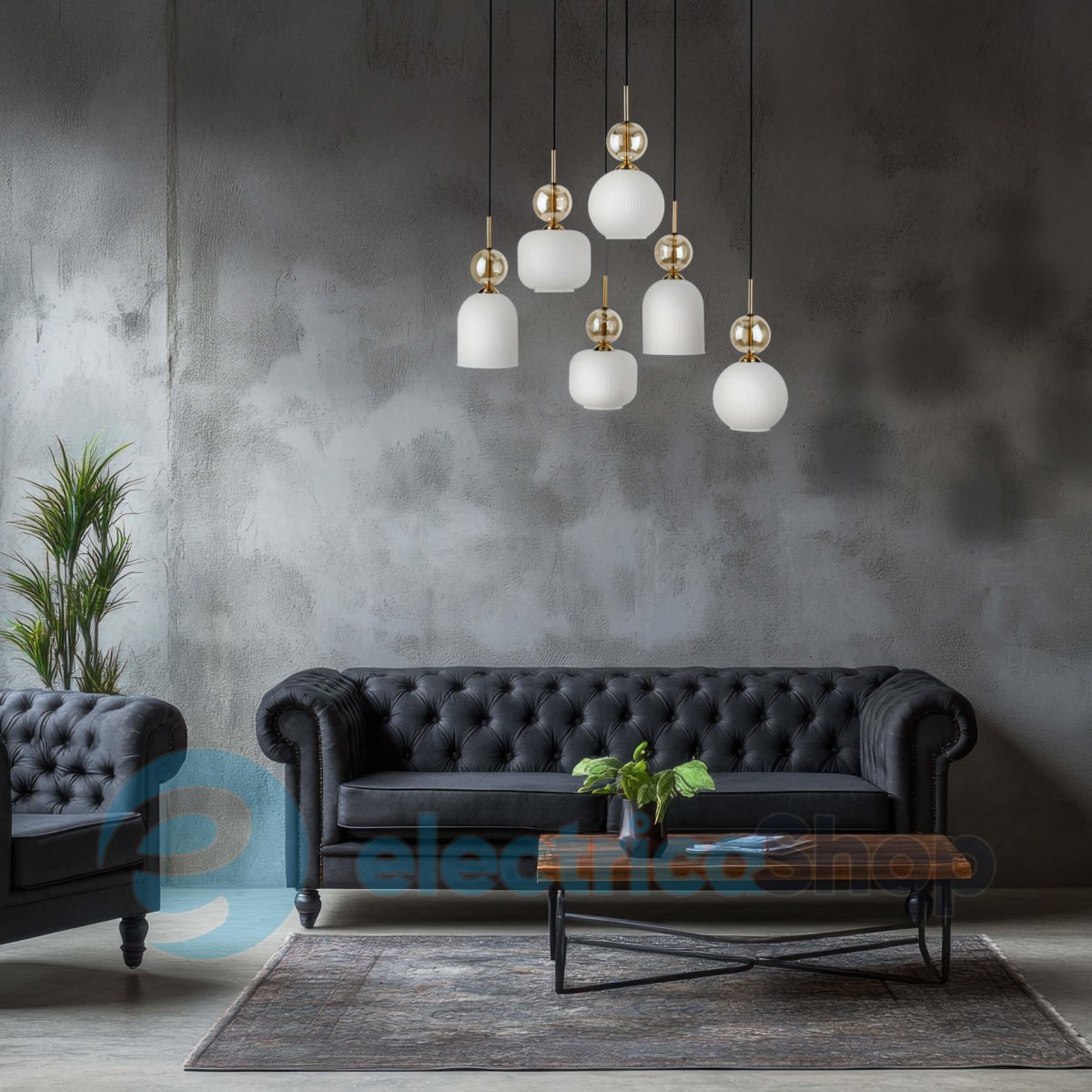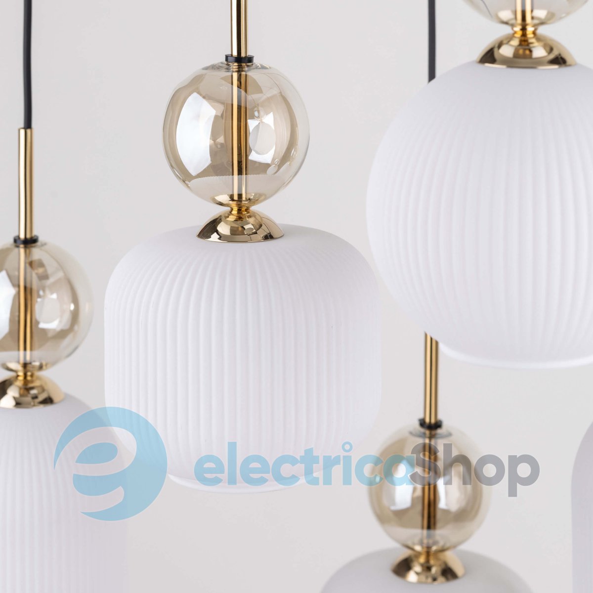 Люстра TK-Lighting SOPHIA COGNAC WHITE 11594 будет отлично смотреться в современных интерьерах, подойдет для стилистики модерн и минимализм. Арматура изготовлена из металла, плафоны стеклянные.