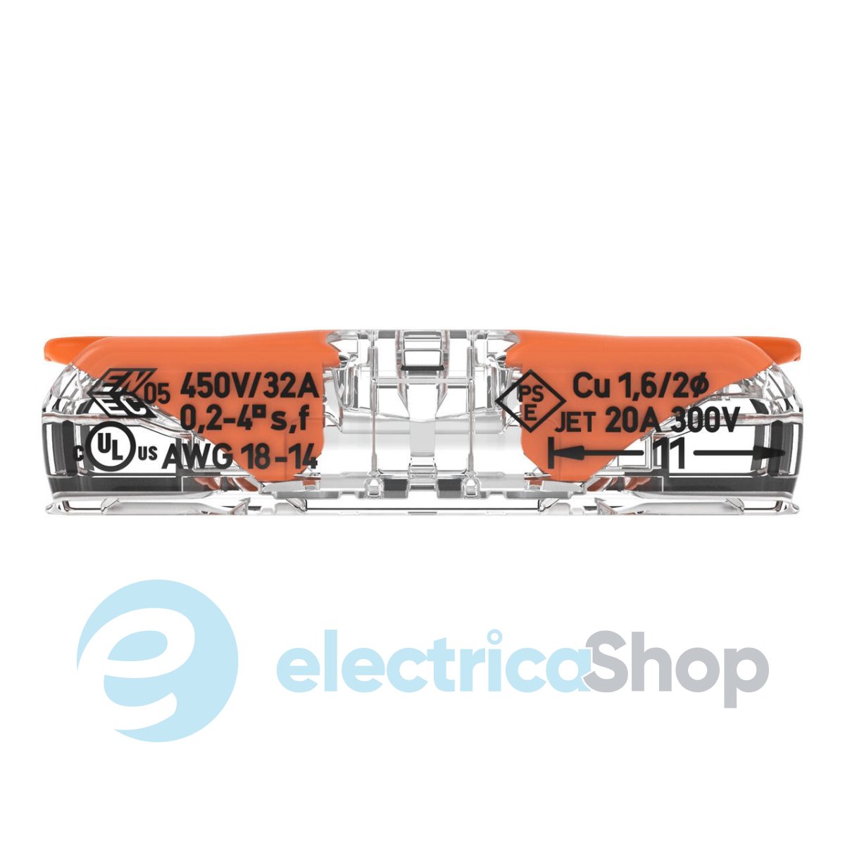 Клеммный зажим 2 входа (0.2-4.0 мм.кв) 32А / 450V CU, с рычажком WAGO 221-422 Green Range