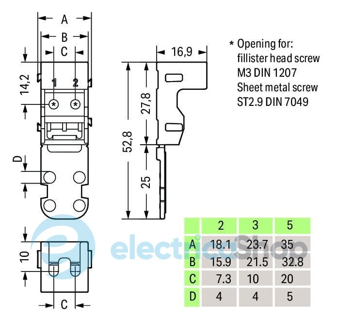 Клеммный зажим 3 входа (0.2-4.0 мм.кв) 32А / 450V CU, с рычажком WAGO 221-423 Green Range