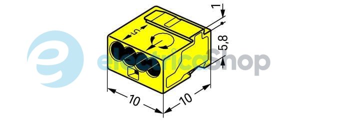 Соединитель имеет однопроводную клемму и использует соединение PUSH WIRE®.