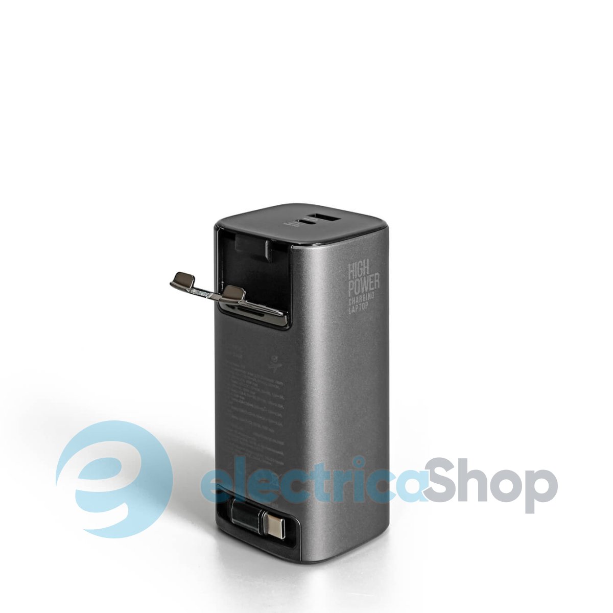 Повербанк можно полностью зарядить примерно за 1,5 часа с помощью разъема USB-C при использовании быстрого адаптера, поддерживающего PD65W и выше. Модель имеет разъем USB-C, USB-A и встроенный USB-C кабель, который легко вытягивается и так же складывается. Разъем кабеля имеет магнитную основу, благодаря чему наконечник при складывании легко прикрепляется к корпусу, чем обеспечивает аккуратный вид и компактность.