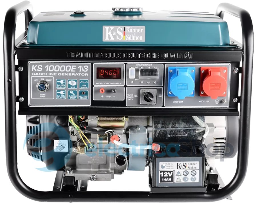 Двигуни відповідають усім світовим та європейським стандартам якості, економічності, екологічності, в тому числі сучасному екологічному стандарту EURO V. Кожний двигун та кожний генератор мають свої індивідуальні серійні номери, що дозволяє нам контролювати якість виробництва та сервісного обслуговування. Двигуни Könner & Söhnen вирізняються легким стартом та пониженою вібрацією. Лінійка бензинових генераторів KS 10000 оснащена надійним 1-циліндровим двигуном потужністю 18 к.с. -