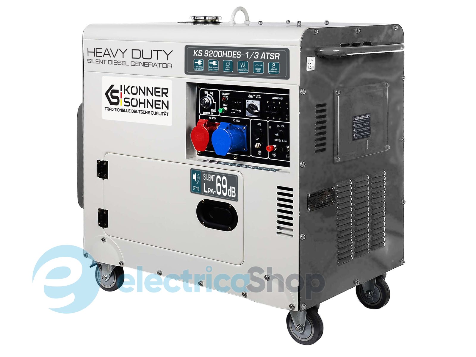 - Комфорт та контроль: Ергономічна панель керування з LED-дисплеєм, передстартовий підігрів та шумопоглинаючий кожух забезпечують зручність використання та комфортну роботу генератора.