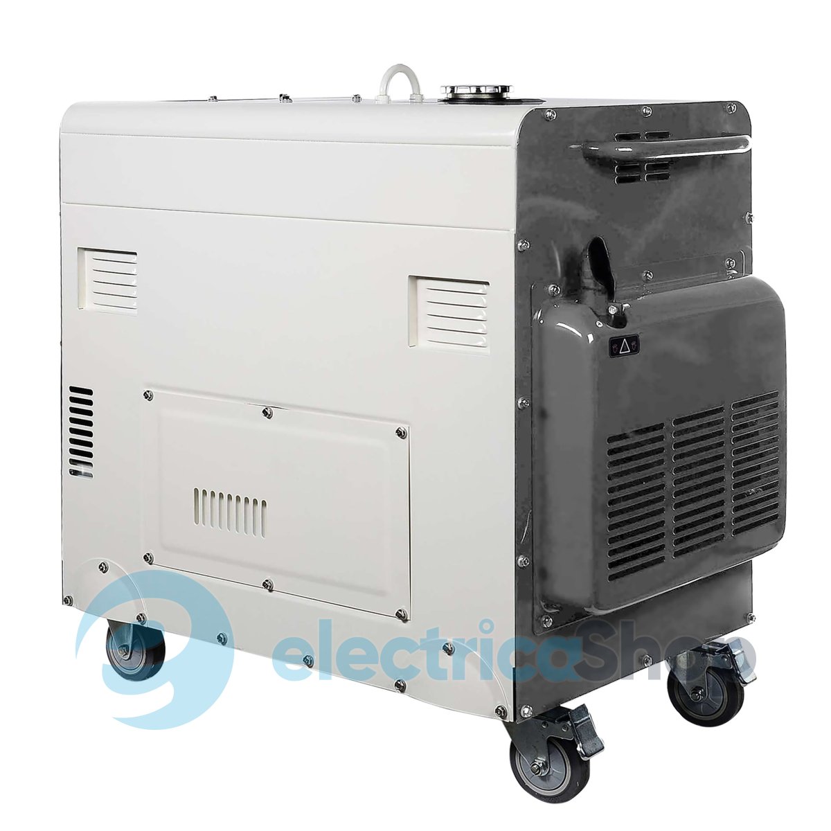 Кожух генератора обладнаний транспортувальним комплектом з 4 колес для зручного пересування агрегата.