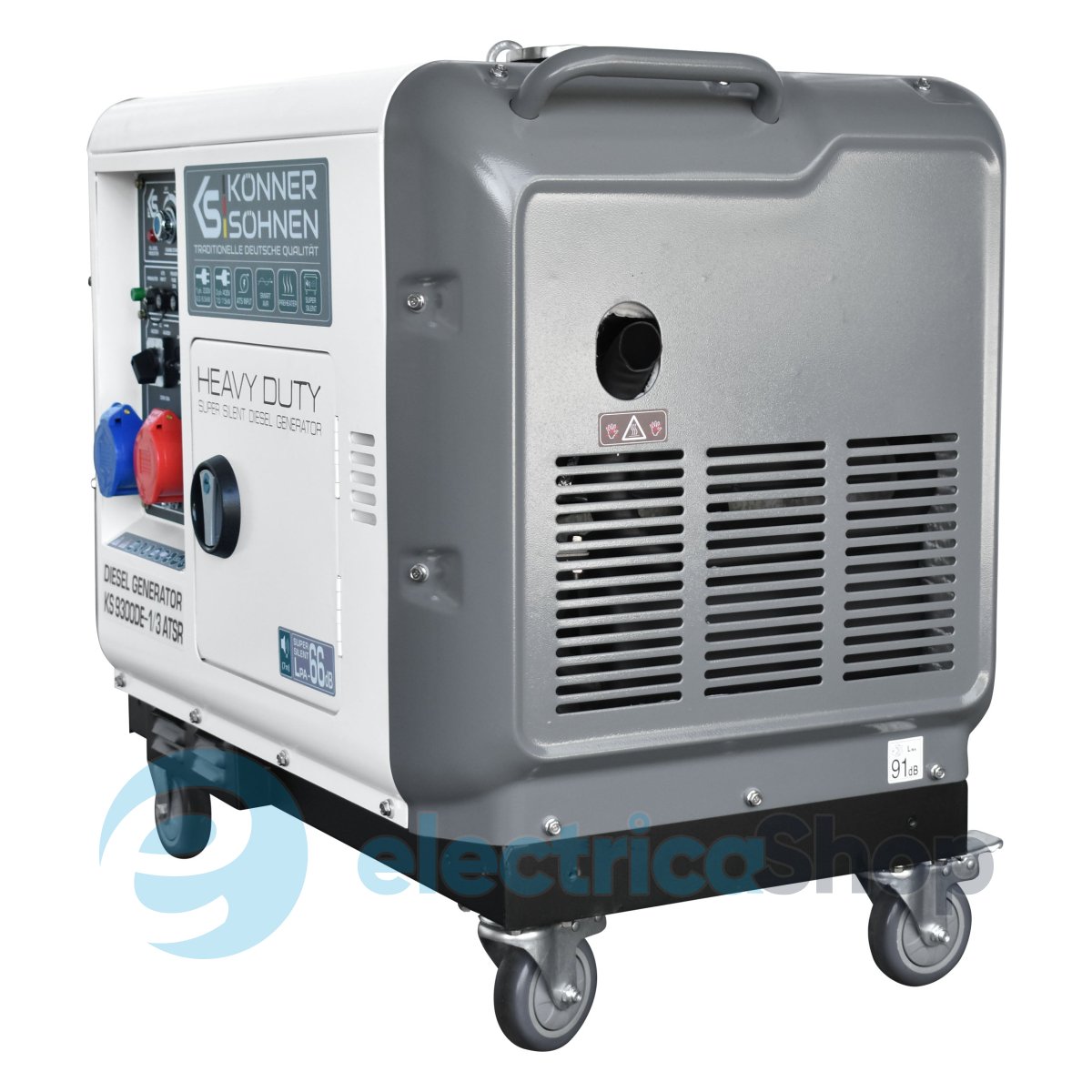 - Шумознижуючий кожух знижує рівень шуму, що виробляється генератором