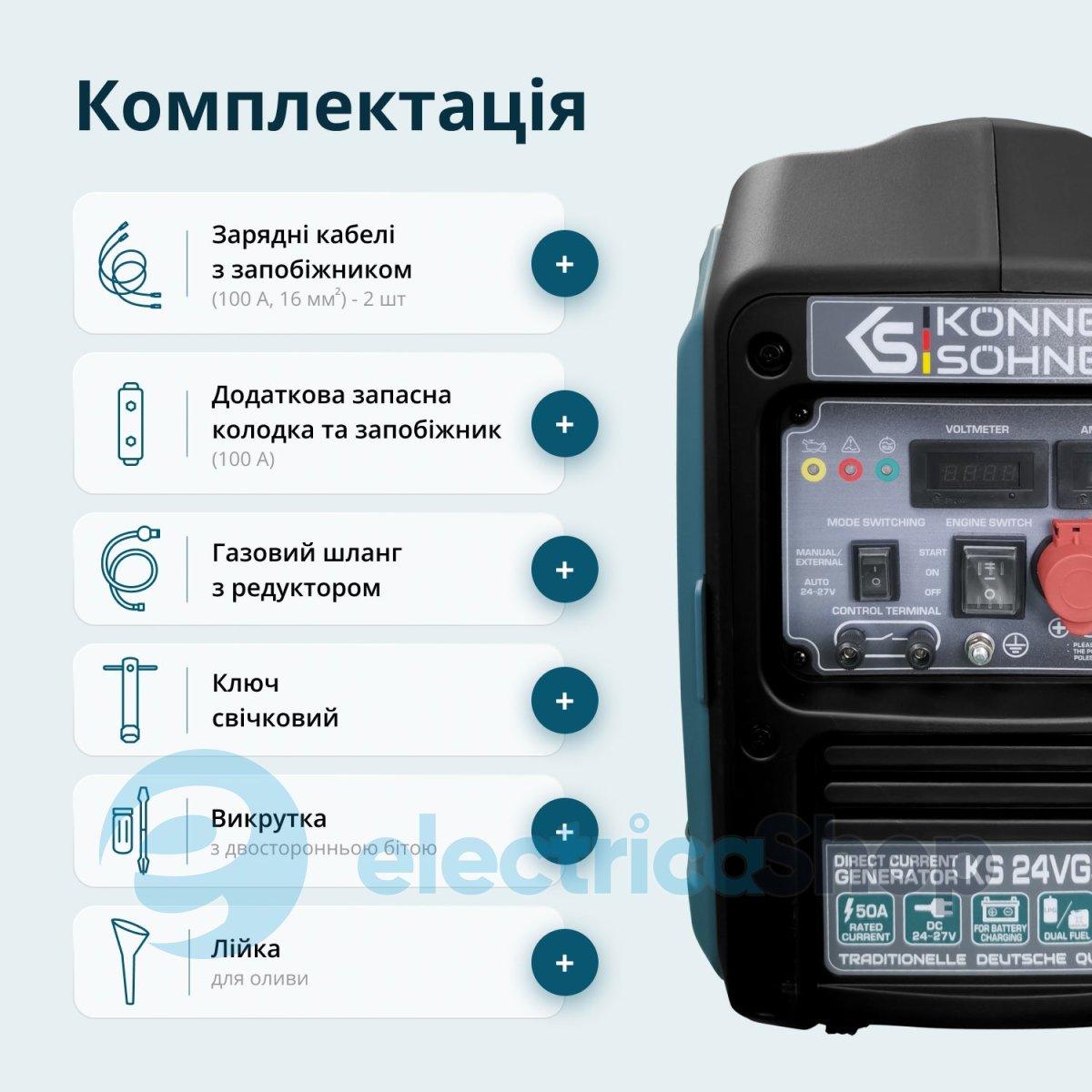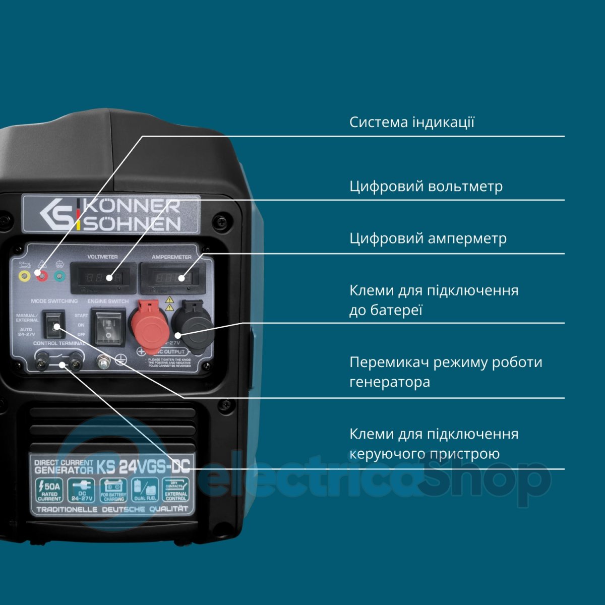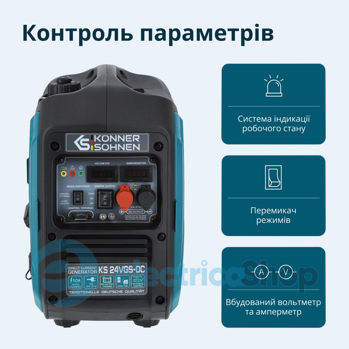 Двопалиний генератор постійної напруги 24-27В 50А німецької марки Könner & Söhnen® – розроблений як резервний зарядний пристрій для заряджання акумуляторів 24-27В, що поєднує ефективність і зручність. Заряджання акумуляторів від генератора DC є максимально ефективним, не потребує додаткових перетворювань напруги. Економія пального, порівняно з заряджанням батареї від звичайних генераторів АС. Автоматичний режим контролює заряд акумулятора, а зручна панель керування спрощує роботу. Ідеальне рішення для сонячних станцій, телекомунікаційного та іншого обладнання.Працює на бензині або зрідженому газі (LPG). Шумозахисний корпус знижує рівень шуму, забезпечуючи комфортну експлуатацію.