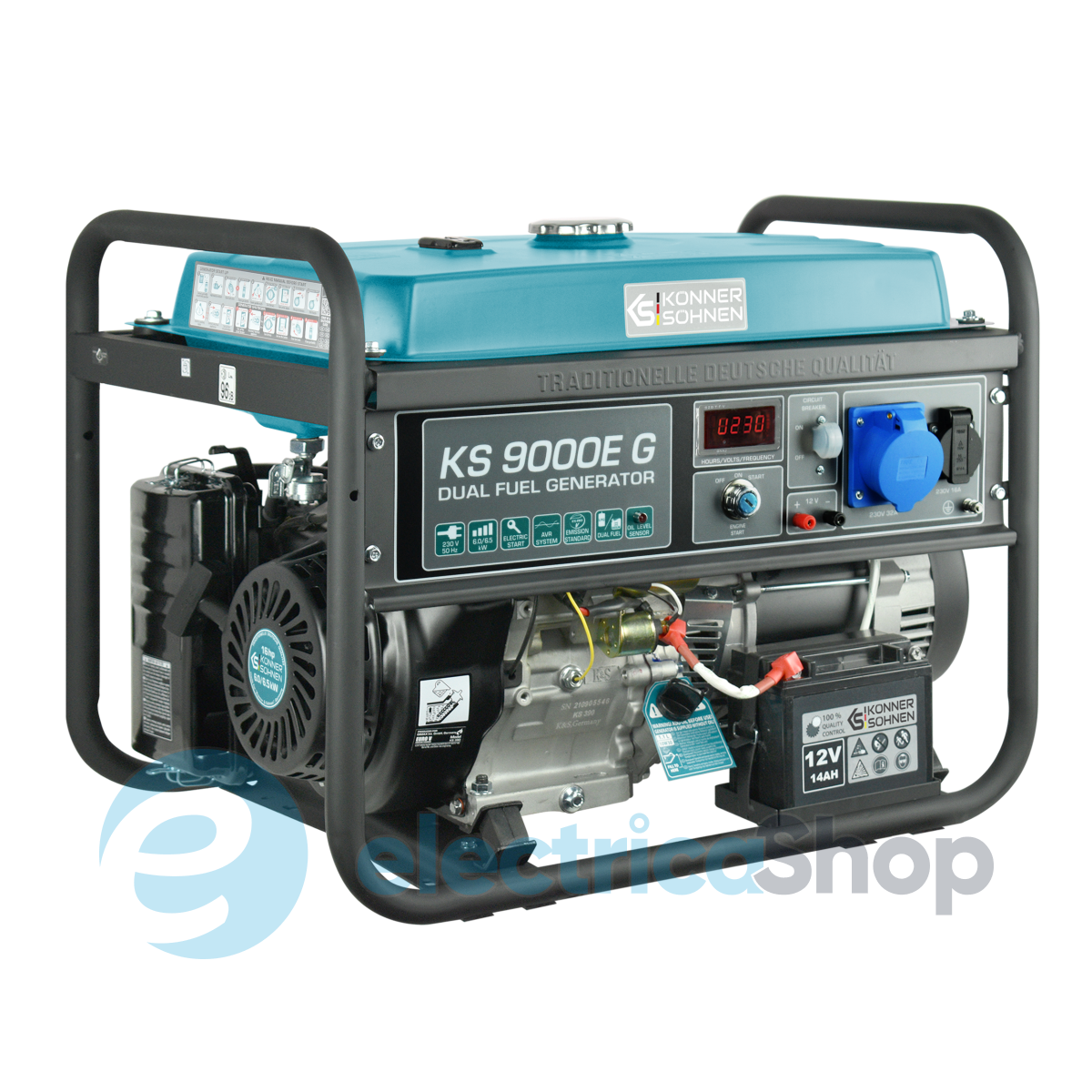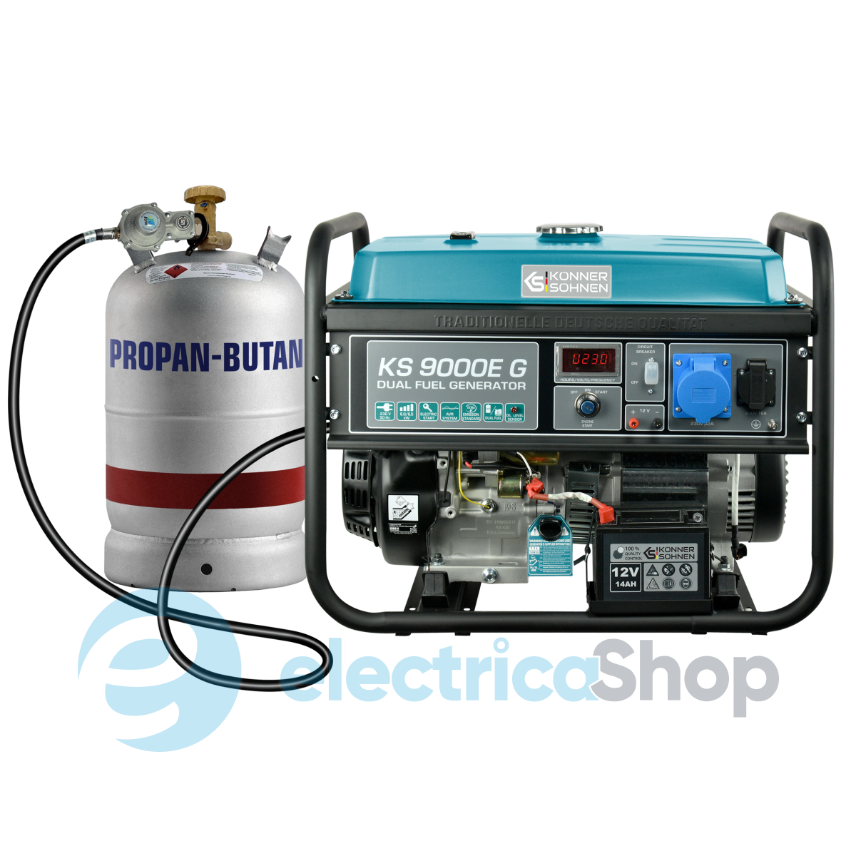 При роботі на зрідженому газі двигун працює з меншою вібрацією, що сприяє тривалій та стабільній роботі генератора та збільшує моторесурс двигуна. Двигуни Könner & Söhnen вирізняються легким стартом та пониженою вібрацією. Лінійка бензинових генераторів KS 9000 оснащена надійним 1-циліндровим двигуном потужністю 16 к.с. -