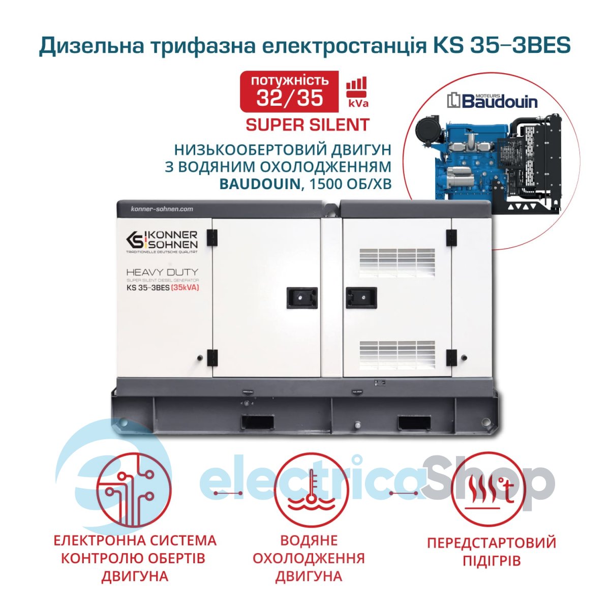 Дизельні 4-х циліндрові електростанції серії HEAVY DUTY німецької торгової марки Könner & Söhnen створені на базі надійних двигунів французького бренду Baudouin з водяним охолодженням.