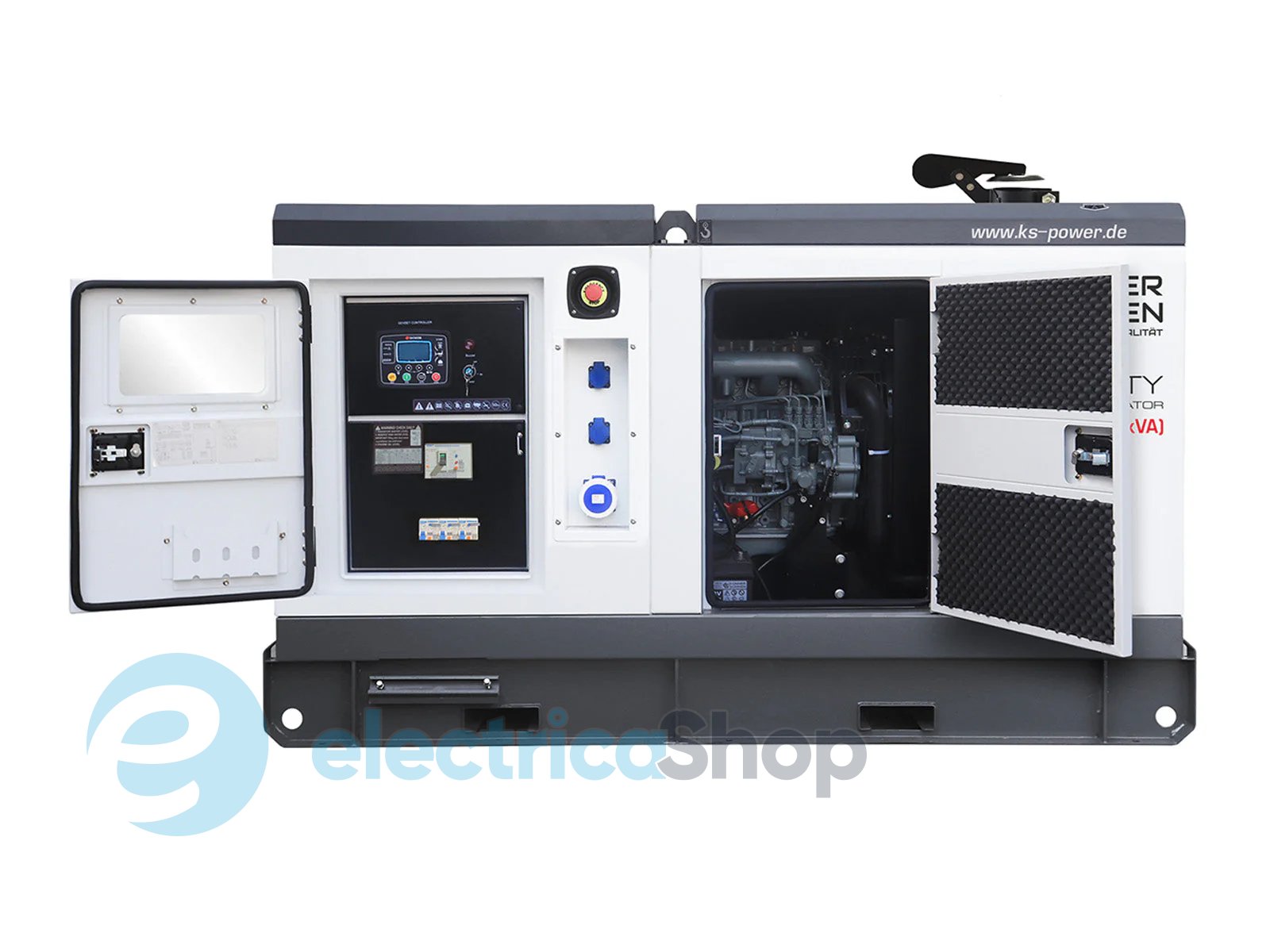 Високоякісний шумозахисний корпус забезпечує суттєве зниження шуму під час роботи установки, має покращений терморозподіл, захищає електростанцію від вологи та конденсату, від несприятливих погодних умов та несанкціонованого втручання. Порошкове антикорозійне покриття продовжує термін експлуатації агрегату. Крім того низько обертові двигуни зі зменшеним рівнем вібрації, закріплені на антивібраційних подушках, що також сприяють більш тихій роботі та зменшенню навантаження на фундамент. Електростанція має кнопку аварійної зупинки STOP для швидкого вимкнення двигуна у разі надзвичайної ситуації. -