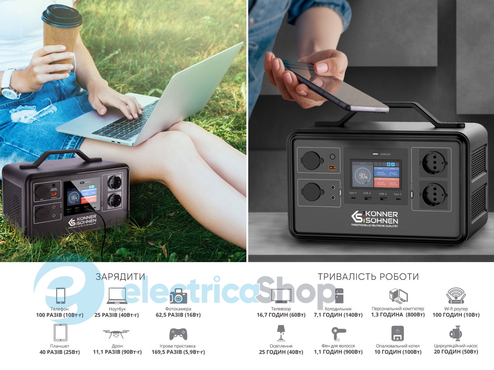 - Безперебійне живлення у будь-якій ситуації: функція блоку безперебійного живлення (UPS) забезпечує миттєве перемикання на живлення від станції у разі збою електромережі, захищаючи вашу техніку від пошкоджень.