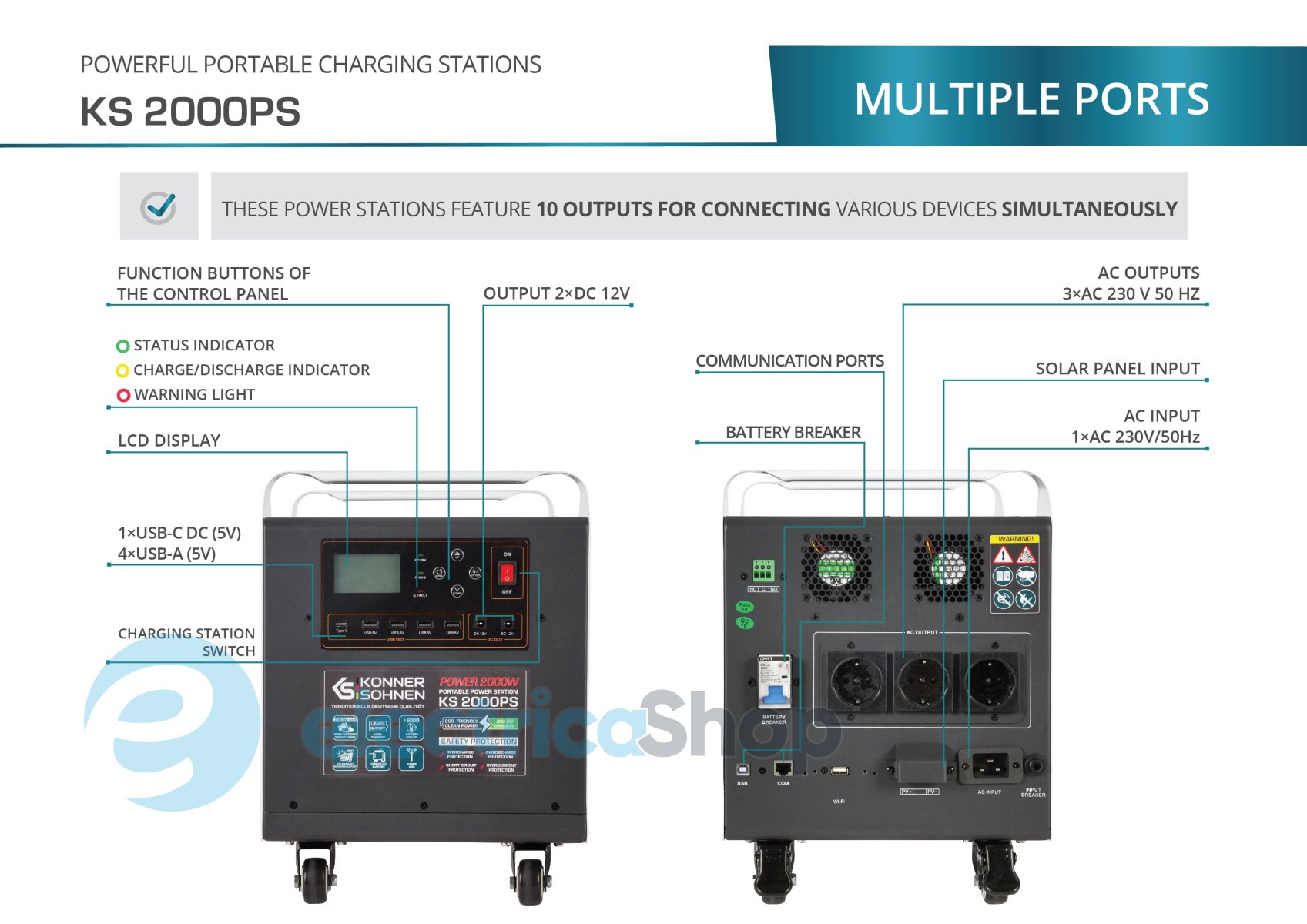 :Станції живлення від Könner & Söhnen® можуть накопичувати енергію трьома різними способами: від мережі змінного струму, сонячних панелей, генератора. Дозволяє здійснити налаштування пріоритету джерела заряджання. Станції мають програмовані безпотенційні контакти управління.
