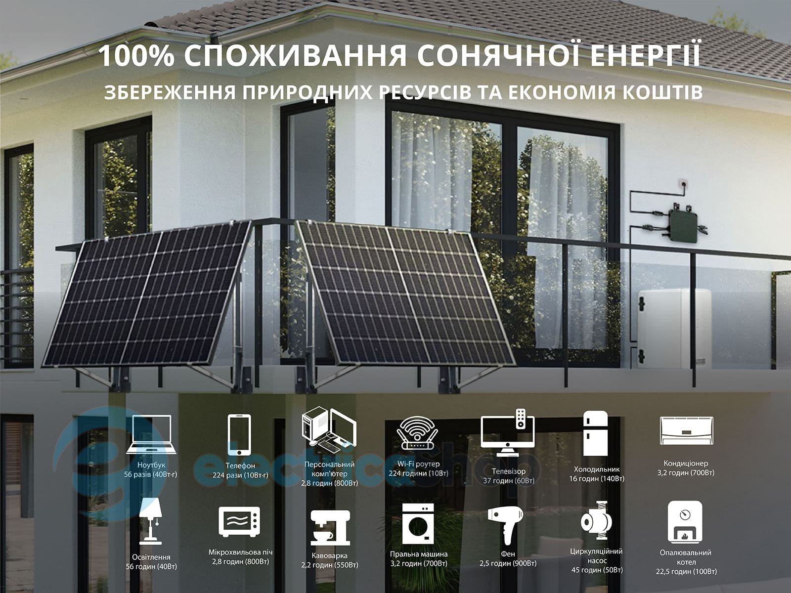 - Максимальна економія на електроенергії - 100% споживання безкоштовної енергії