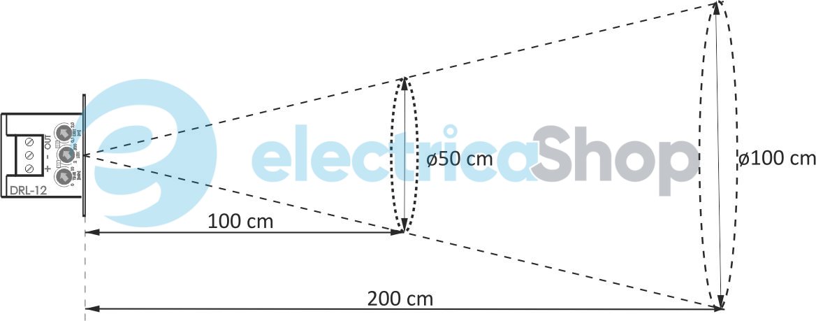 - Дальность обнаружения (порог обработки): 0,1÷2,0 м регулируется