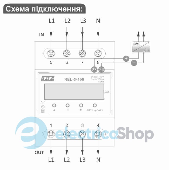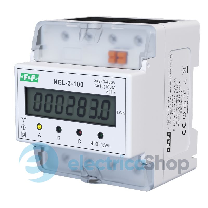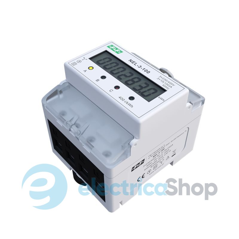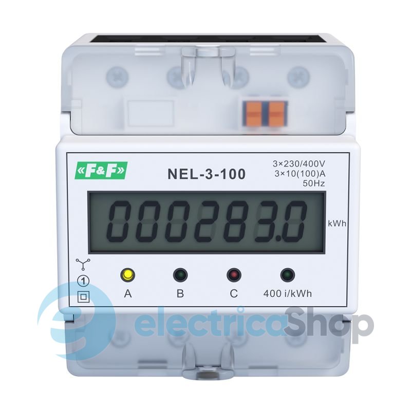 Счетчик электроэнергии F&F NEL-3-100 - это статический (электронный) счетчик потребления электроэнергии трехфазного переменного тока в прямой системе подключения.