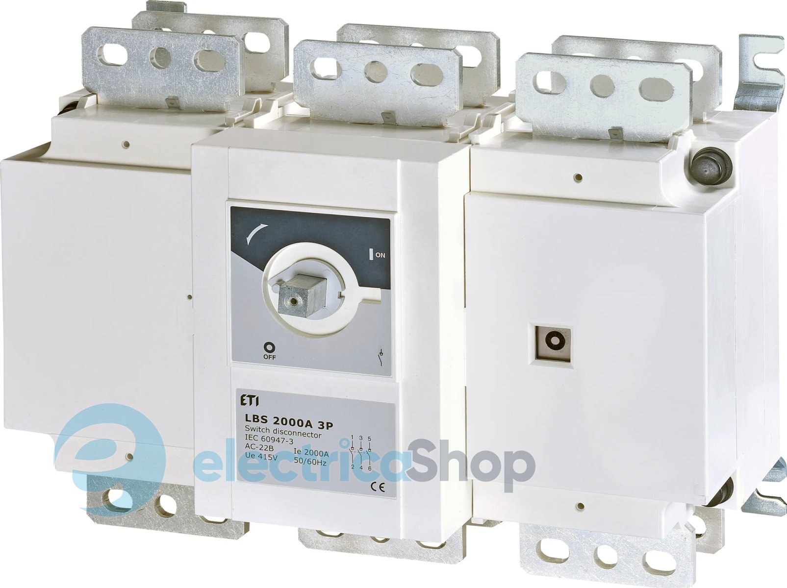 Вимикач навантаження LBS 3P 2000 ("1-0", 2000А) призначений для встановлення в розподільних щитах та застосовуються для комутації електричних кіл низької напруги зі струмом від 160А до 3200А.