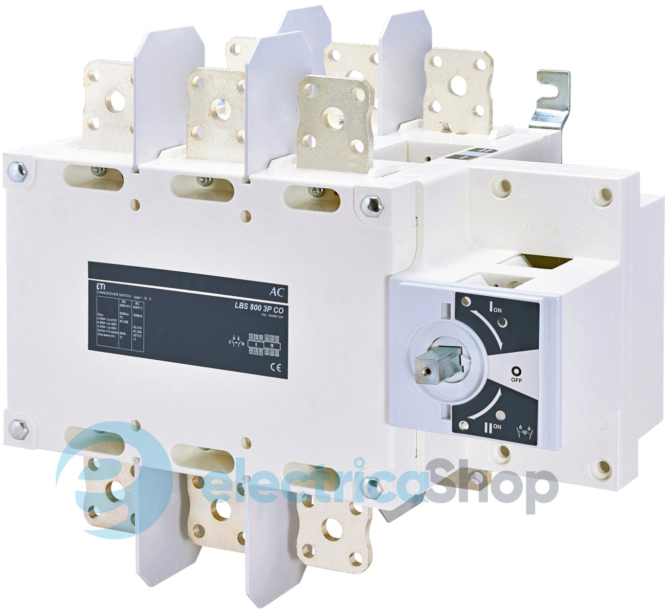 Перемикач навантаження LBS CO 3P 800 ("1-0-2", 800А) призначений для встановлення в розподільних щитах та застосовуються для комутації електричних кіл низької напруги зі струмом від 160А до 3200А.