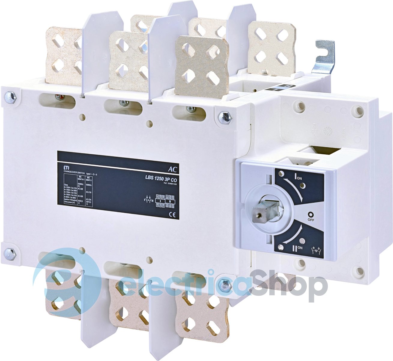 Перемикач навантаження LBS CO 3P 1250 ("1-0-2", 1250А) призначений для встановлення в розподільних щитах та застосовуються для комутації електричних кіл низької напруги зі струмом від 160А до 3200А.