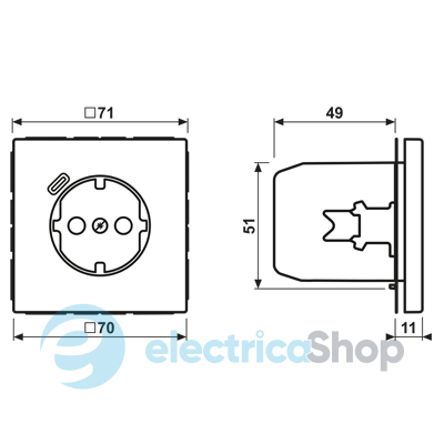Розетка с з/к и USB тип C LC1520-18C212 имеет защиту контактов (Safety Plus / защита от детей) и устанавливается в монтажную коробку с размерами согласно DIN 49073