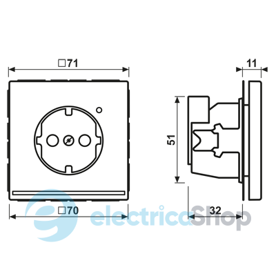 - Глубина врезки / установки, мм: 32