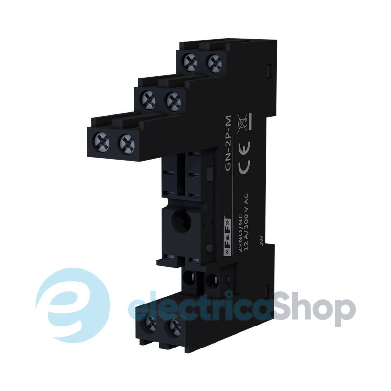 Роз'єм модульний для реле (два перемикаючі контакти NO/NC) для DIN-рейки TH-35 з навантаженням до 12 А. Призначена для реле PG-2P з живленням від напруги 24 В постійного струму або 230 В змінного струму.