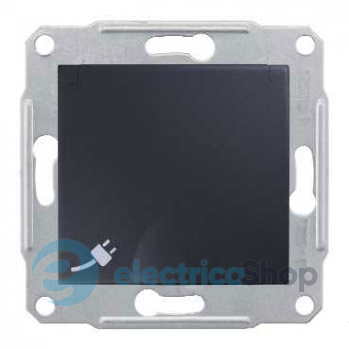 Розетка с заземляющим контактом шторки.графит Sedna SDN3000170