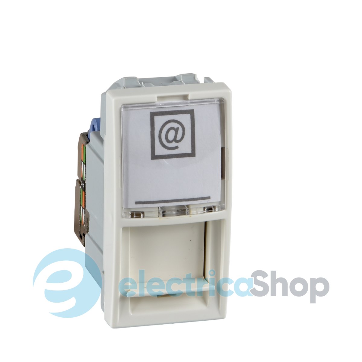 Механизм компьютерной розетки комплектуется держателем этикетки защитной шторкой.