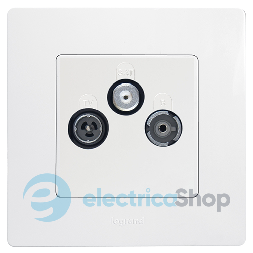– Розетка для подключения телевизора к эфирному и спутниковому телевидению. Имеет 2 независимых входа, которые позволяют добавить спутниковый канал без изменения существующей структуры эфирного ТВ. Имеет FM-разъем.