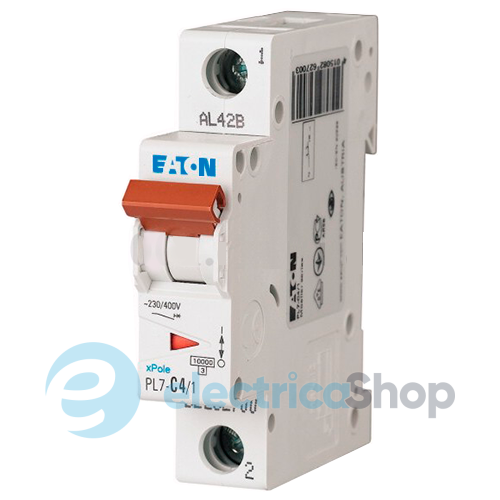 – Номинальное напряжение: 230/400 V~. Возможно использовать в сетях с постоянным током до 48V DC. Для более высоких постоянных напряжений используйте специальную серию Eaton PL7-DC.
