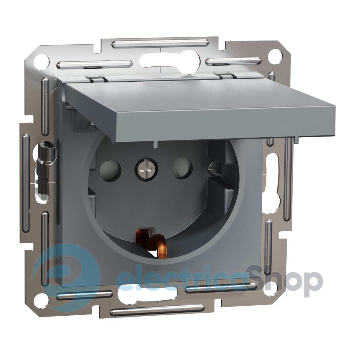 Описание розетки с заземлением и с крышкой «Asfora», EPH3100162