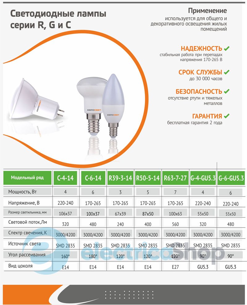 Описание светодиодной лампы Евросвет R39-3-4200-14 3вт 170-240V