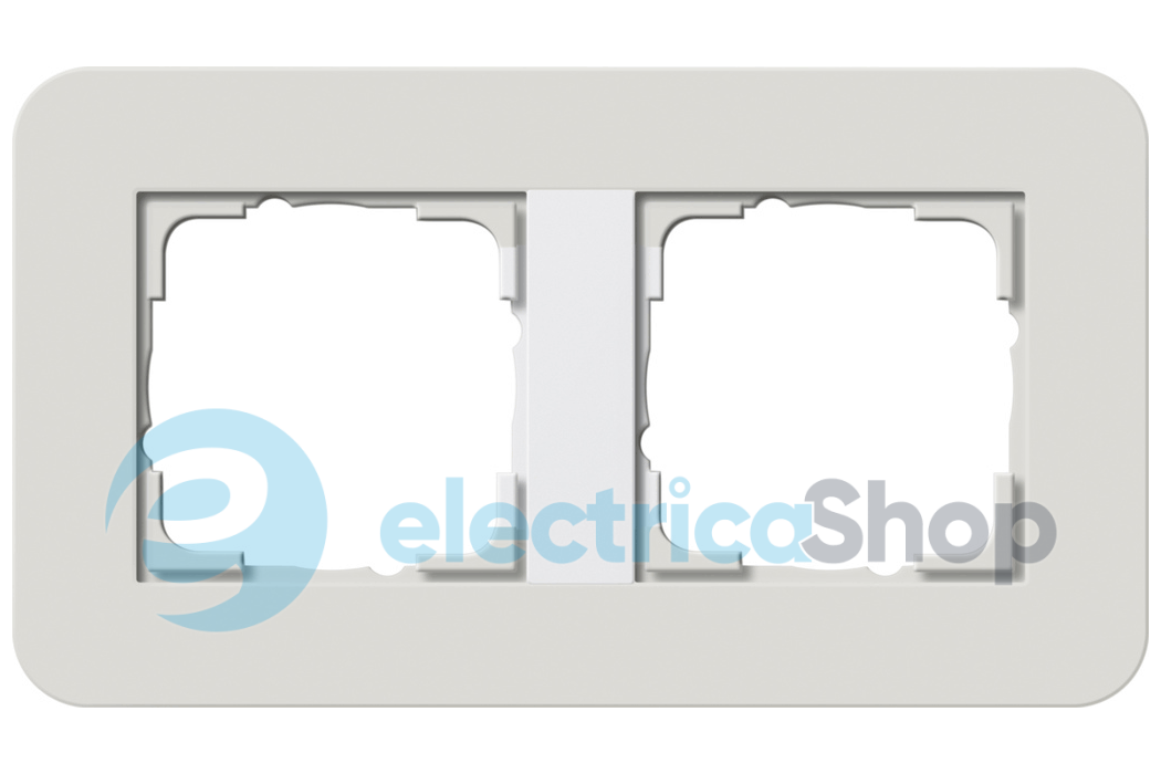 Установочная рамка Gira E3 с мягкой на ощупь поверхностью светло-серого цвета с несущей рамкой белого цвета.