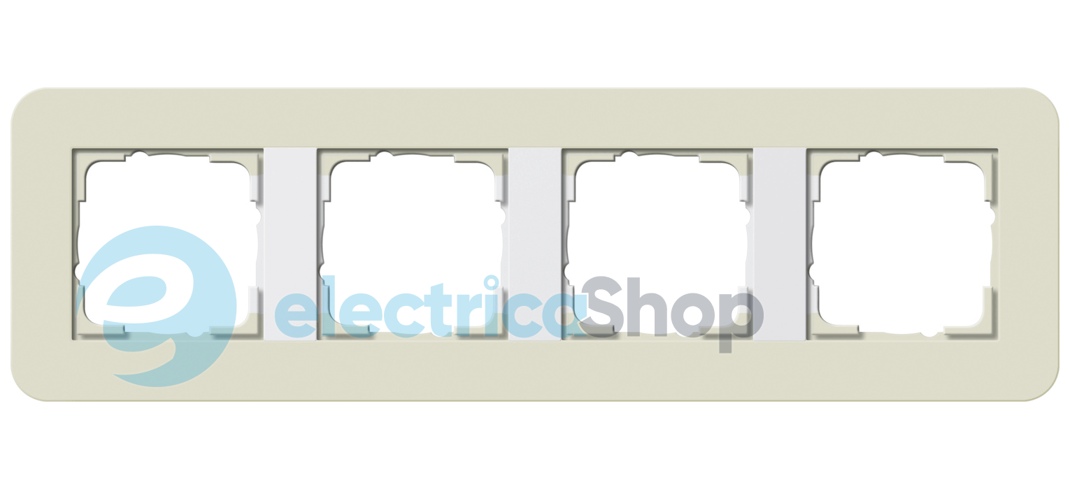 Установочная рамка Gira E3 с мягкой на ощупь поверхностью песочного цвета с несущей рамкой белого цвета.