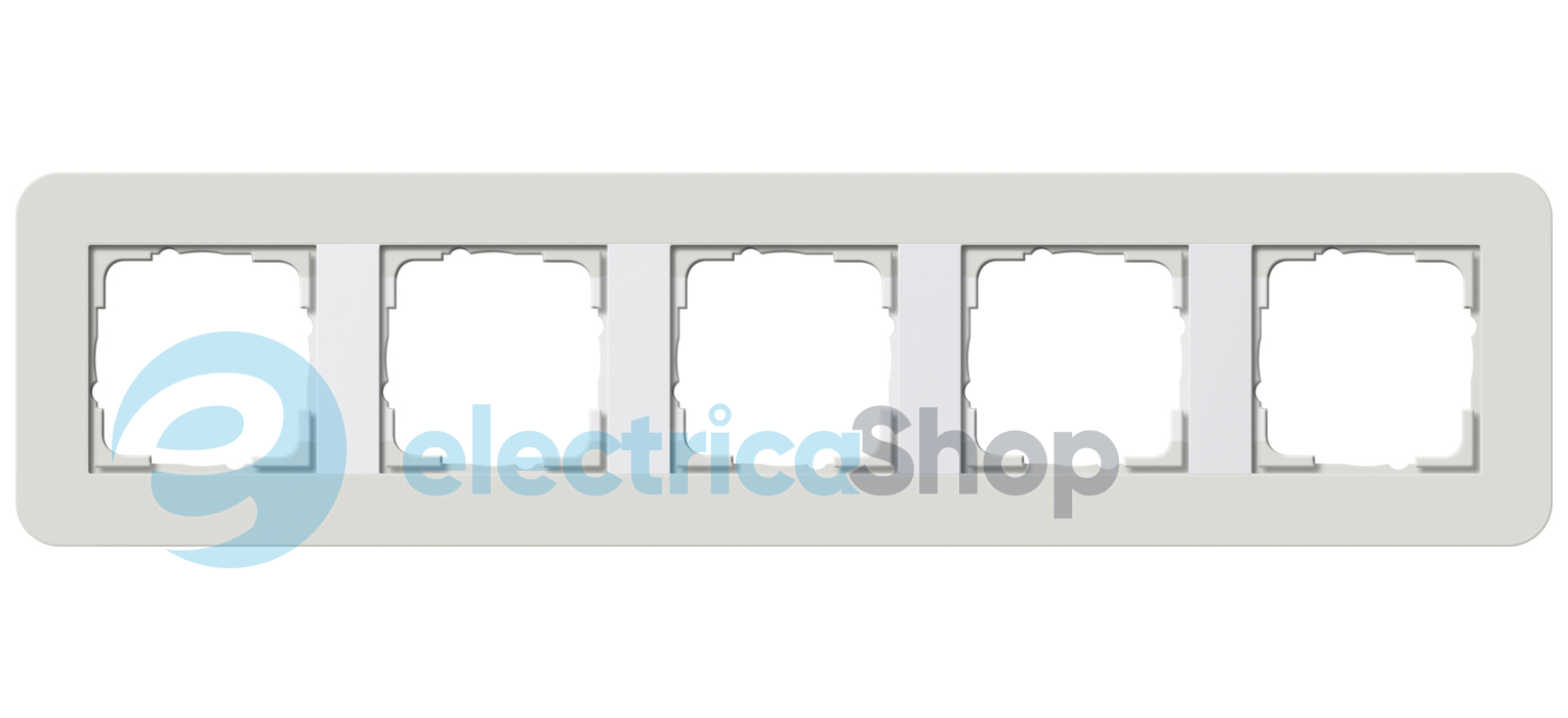 Установочная рамка Gira E3 с мягкой на ощупь поверхностью светло-серого цвета с несущей рамкой белого цвета.