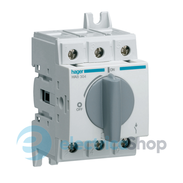 Рубильник 3-полюсный, модульный, с поворотной ручкой производства фирмы Hager (Франция).