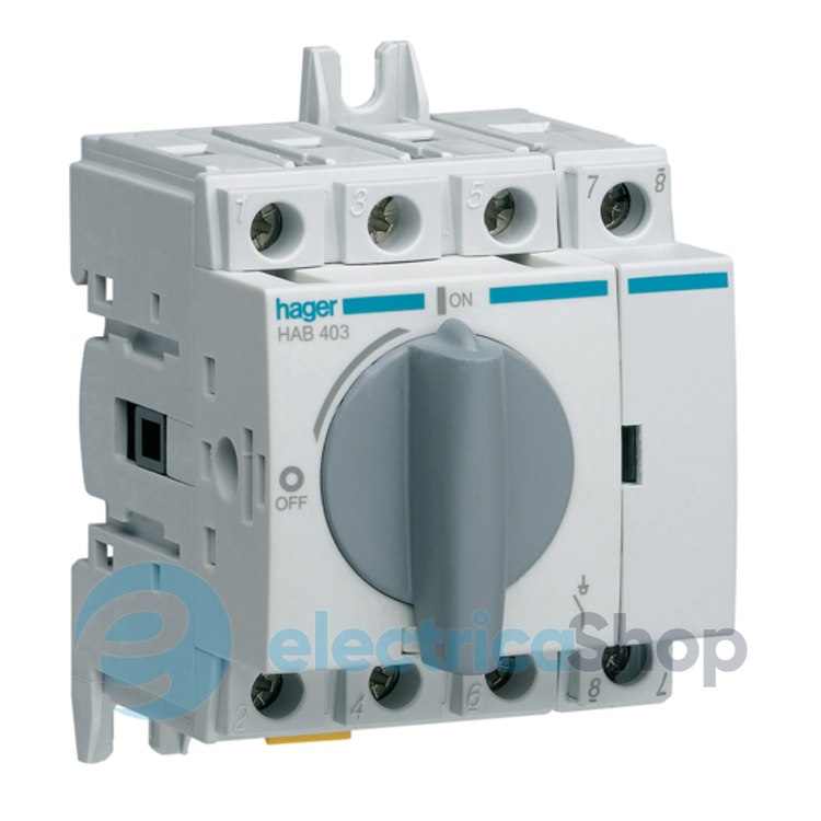 Рубильник 4-полюсный, модульный, с поворотной ручкой производства фирмы Hager (Франция).